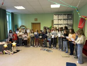 Am 6.12 besuchte uns der Herr Pfarrer.  Gemeinsam mit dem Kindergarten feierten wir ein Nikolausfest. Es wurde zusammen gesungen und die Geschichte des Heiligen Nikolaus erarbeitet. Zum Abschluss verkleidete sich der Pfarrer als Nikolaus und verteilte Säckchen an die Kinder.